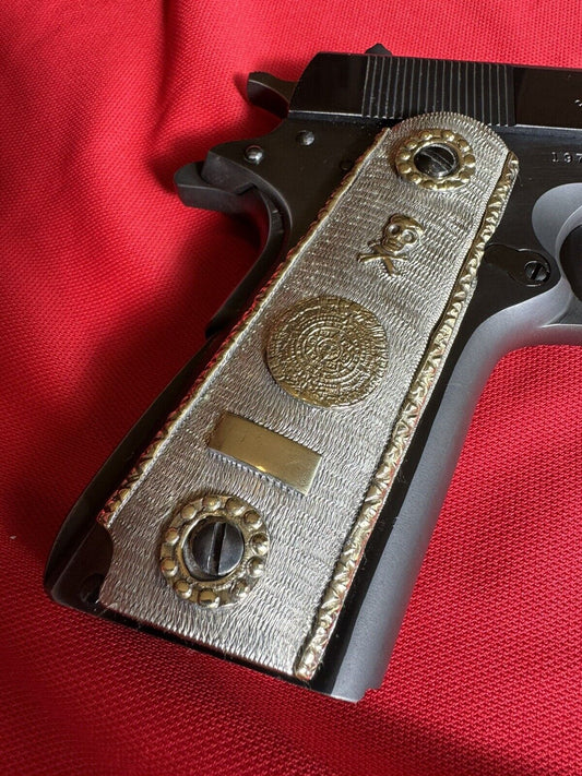 1911 Colt Silver Horse Plated Pearl Aztec Motif Engraved grips 45 38 super Rare