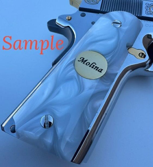 1911 Grips *FREE NAME ENGRAVING* 24k Gold Plated Medallion inlayed Pearl Grips 38 super 45 acpRegular price $199.00Regular priceUnit price / per-
