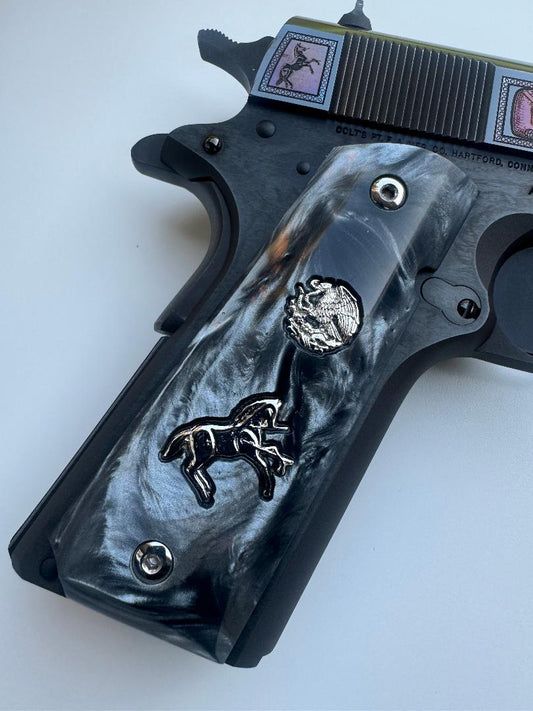 1911 Black Pearl "Aguila" “Horse” Nickel Plated Inlayed GripsRegular price $175.00Regular priceUnit price / per-