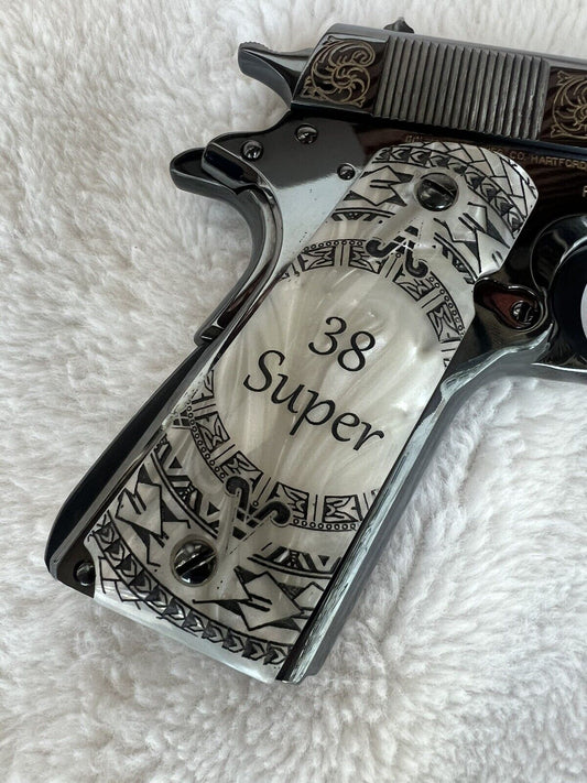 1911 Pearl Laser Engraved Scrolls Colt Logo Grips 45 acp 38 Super calRegular price $130.00Regular priceUnit price / per-