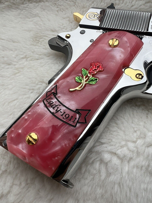 1911 Pink Grips Lady 1911 Rose 24k Gold Plated Custom Engraved 45 acp 38 SuperRegular price $140.00Regular priceUnit price / per-