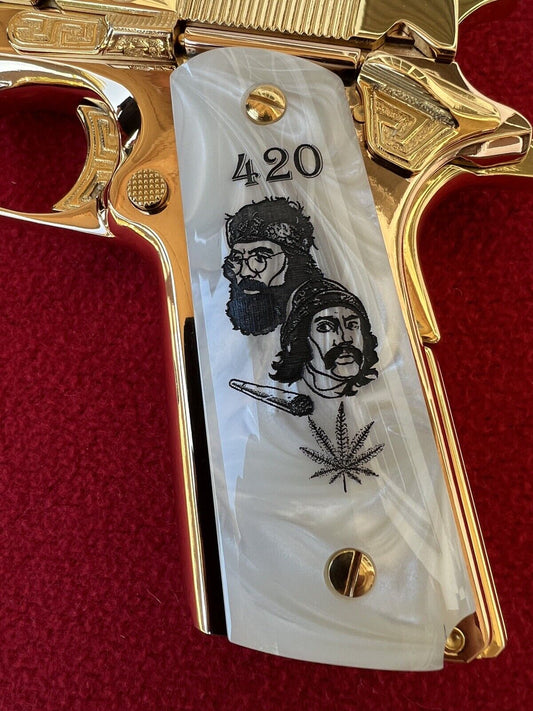 1911 Pearl Laser Engraved Cheech and Chong Grips 45 acp 38 Super calRegular price $130.00Regular priceUnit price / per-