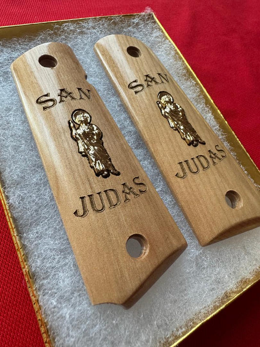 1911 Grips Wood San Judas inlayed 24k Gold Plated 45 acp 38 SuperRegular price $130.00Regular priceUnit price / per-