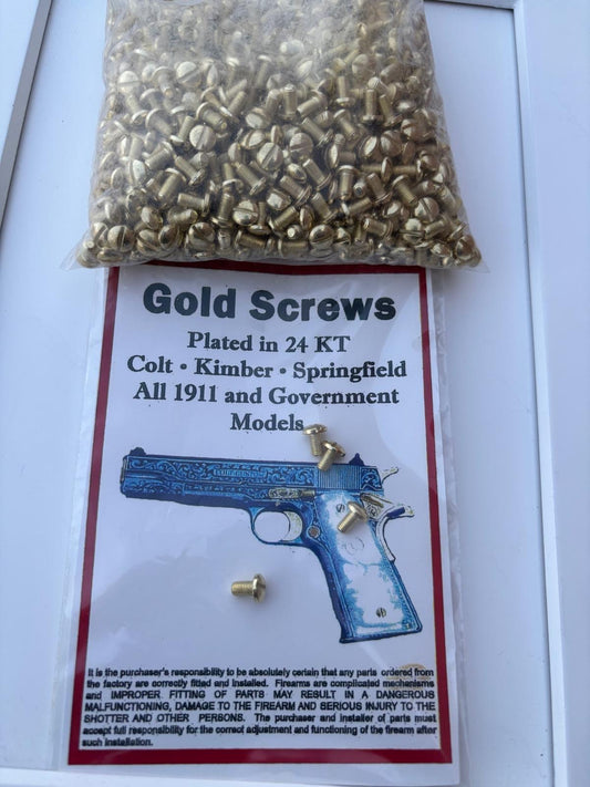 1911 Gold plated Slotted screws, Colt, Rock Island, Kimber, 38 super, .45 acp.