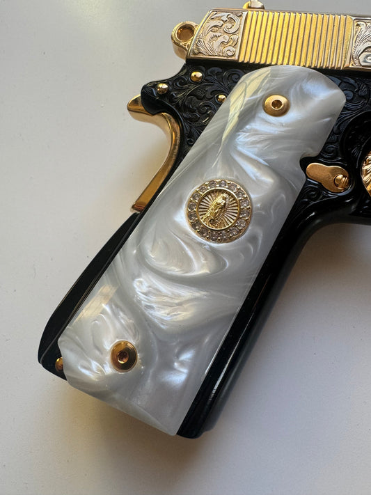 1911 Virgin Mary Medallion Inlayed CZ stones Grips White Pearl Grips