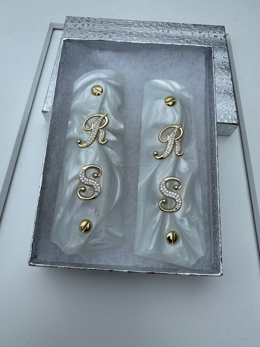 1911 “R” “S” 24k Gold Plated Inlayed CZ stones Grips white Pearl Grips