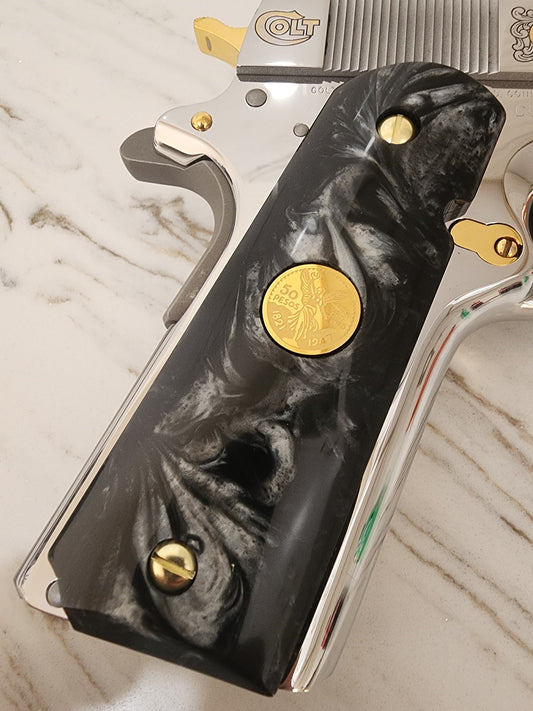1911 Black Pearl Mini Centenario 14k Gold Filled Coin Grips 45 acp 38 Super