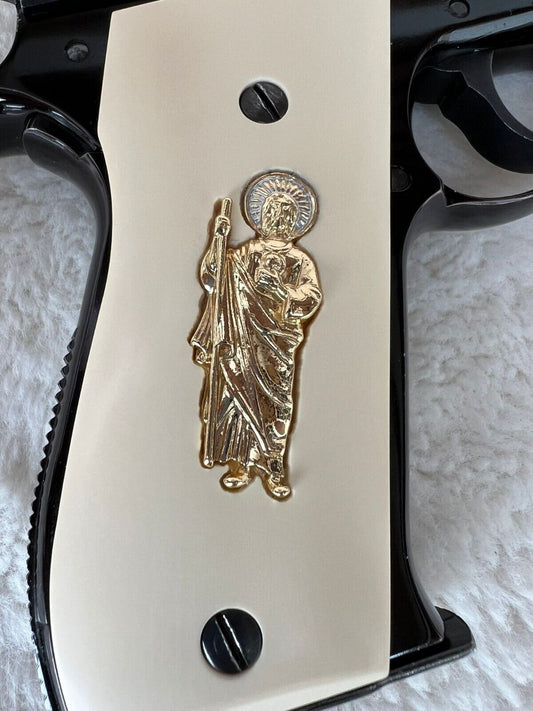 Beretta 9mm Custom San Judas Grips 24k gold plated 92 Fs 96 Fs M9