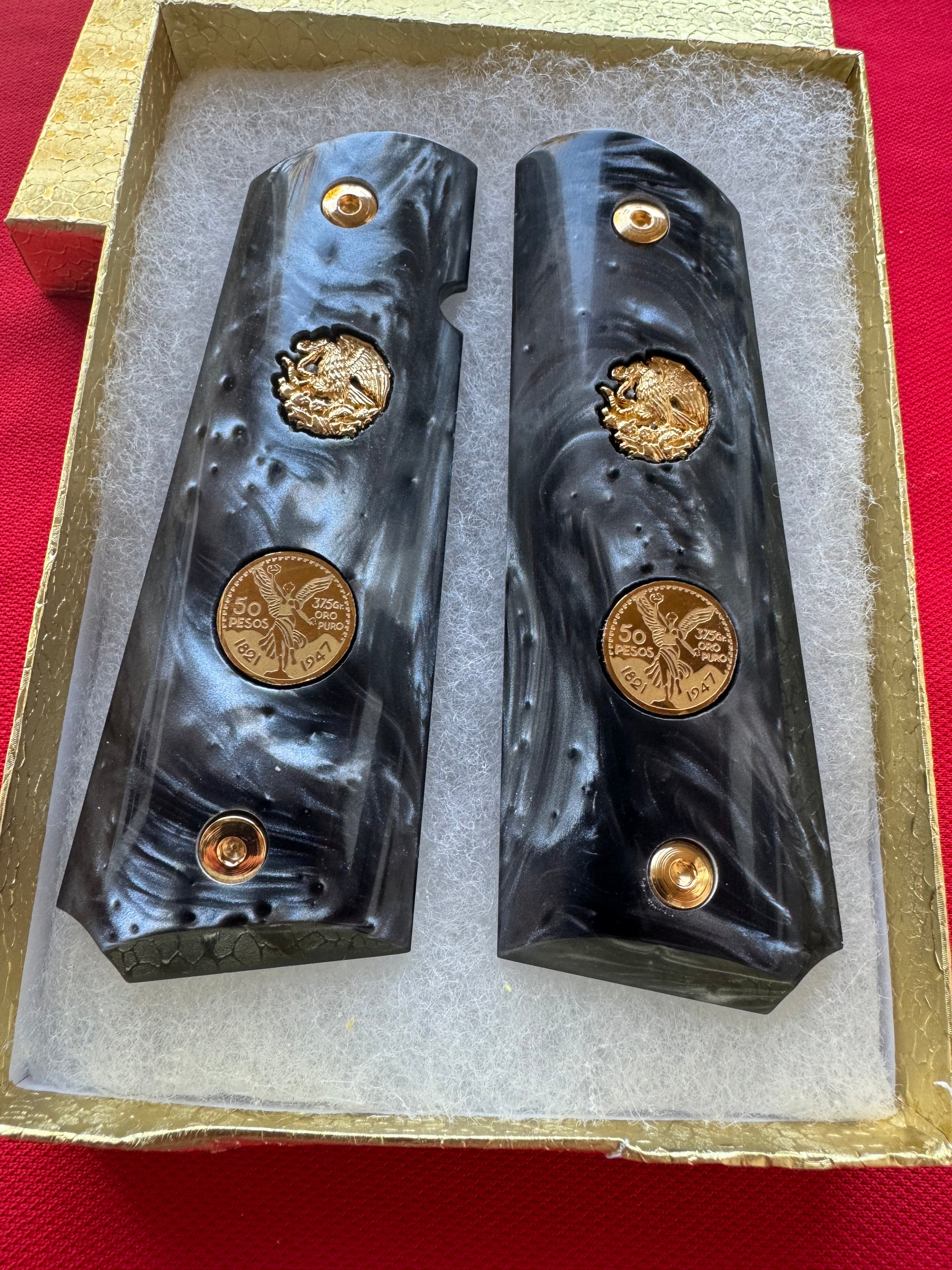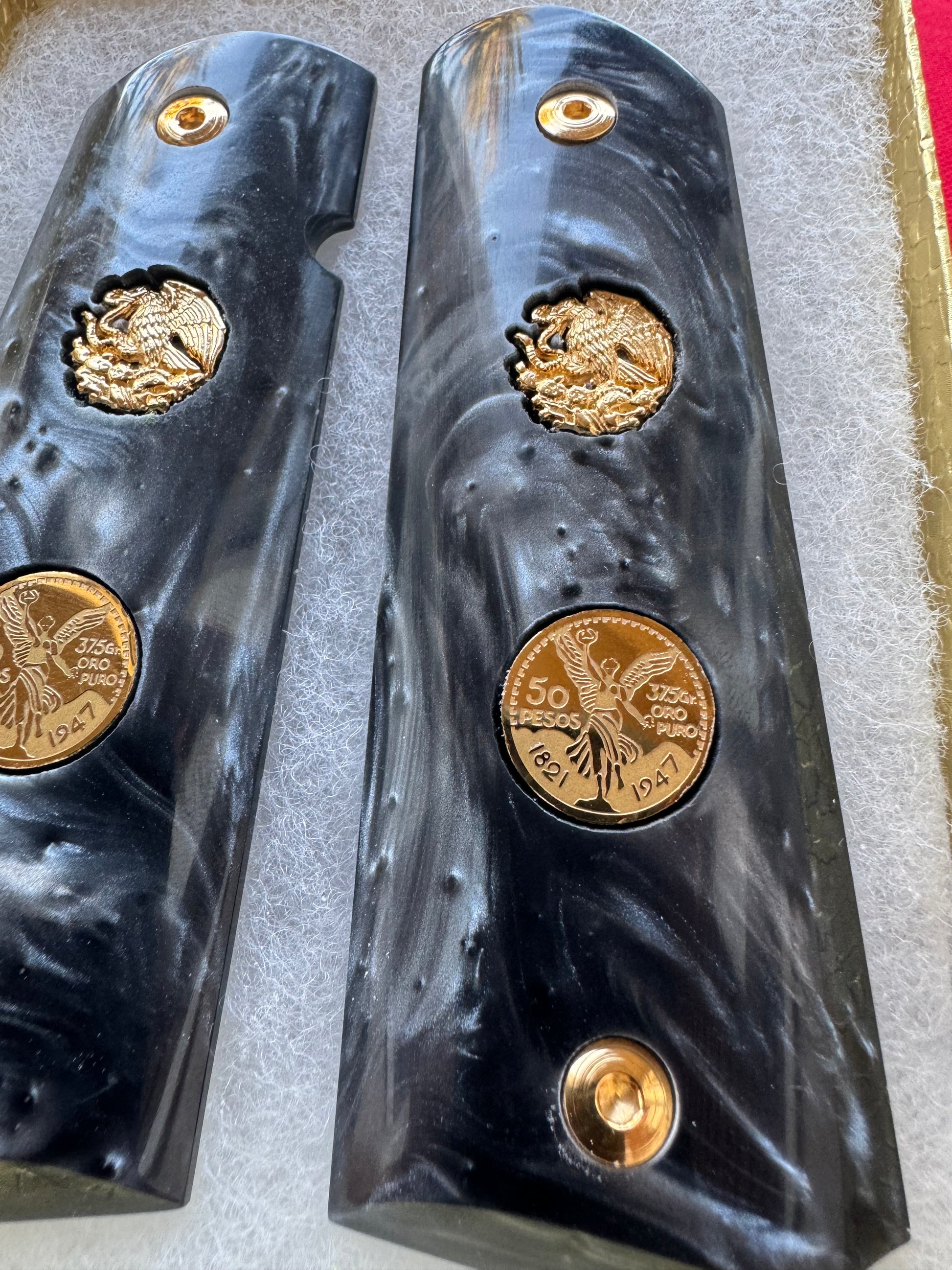 1911 "Aguila" “Centenario” Black Pearl 24k Gold Plated Inlayed Grips Pearl Grips
