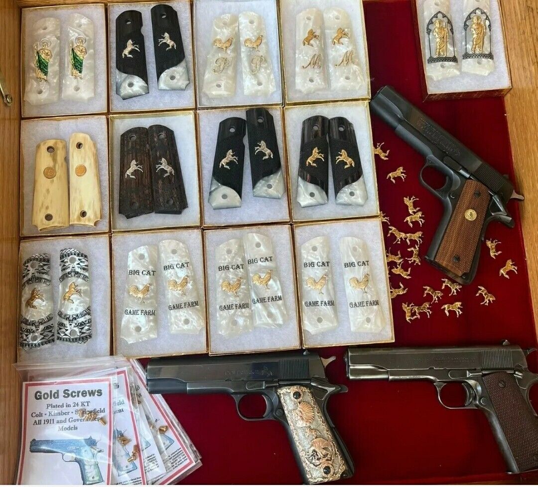 1911 Gold Plated Rooster/Aztec Pearlite Engraved grips 45 38 super Rare