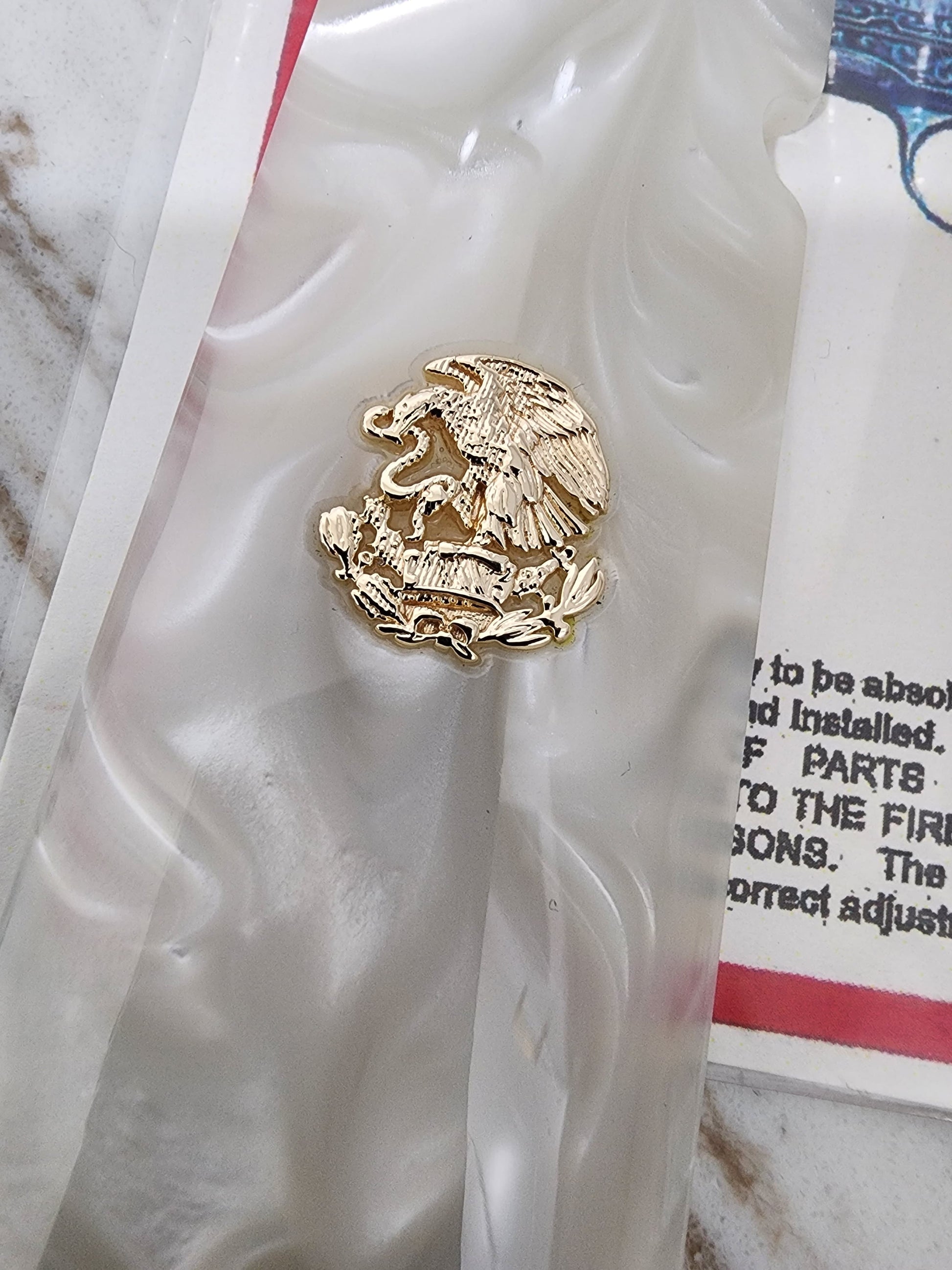 - Detailed Mexican eagle medallions in gold-tone