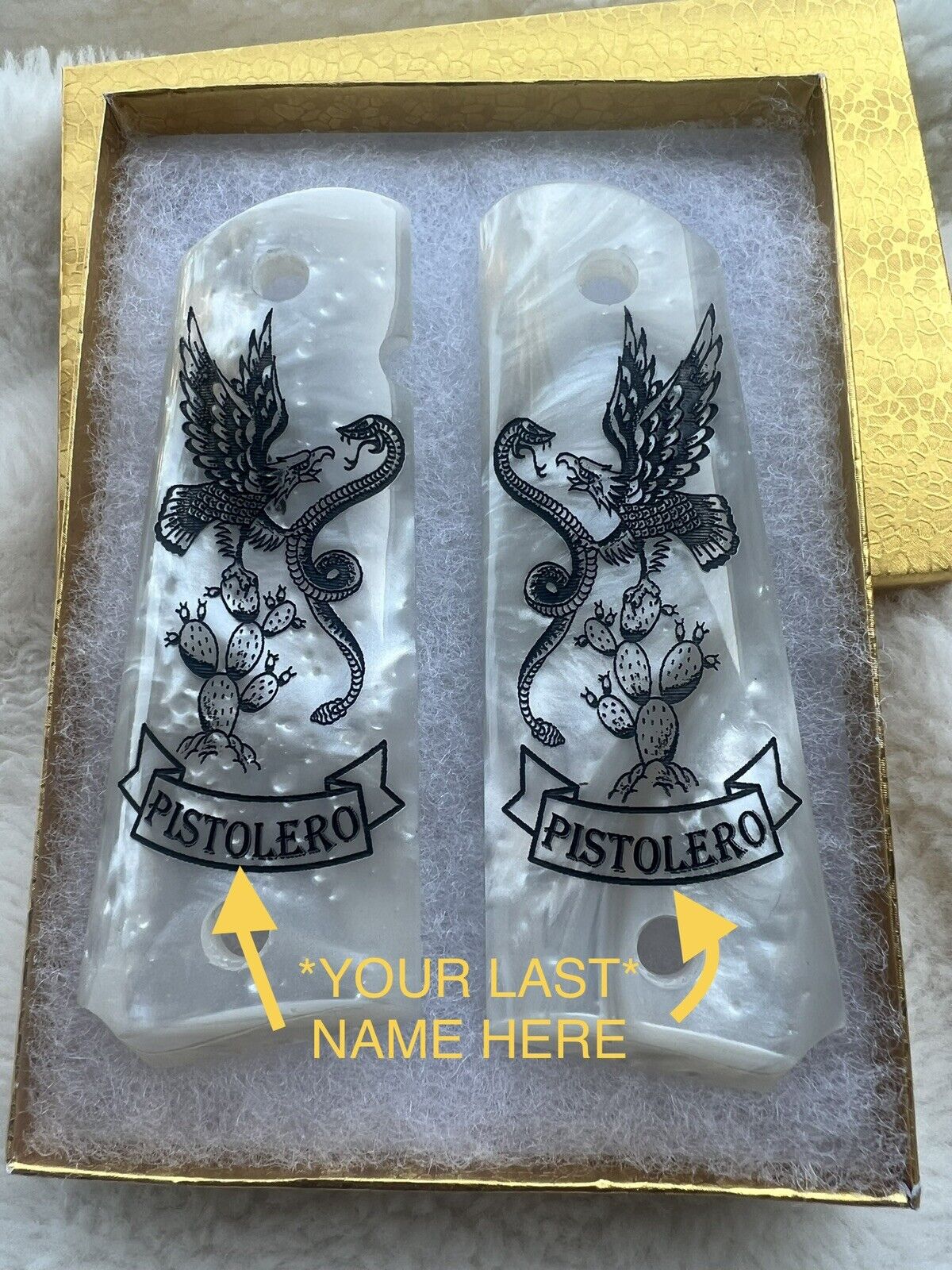 1911 Pearl Mexican Eagle / Snake / Cactus *FREE ENGRAVING IN SPACE FOR LAST NAME* Grips 45 acp 38 Super