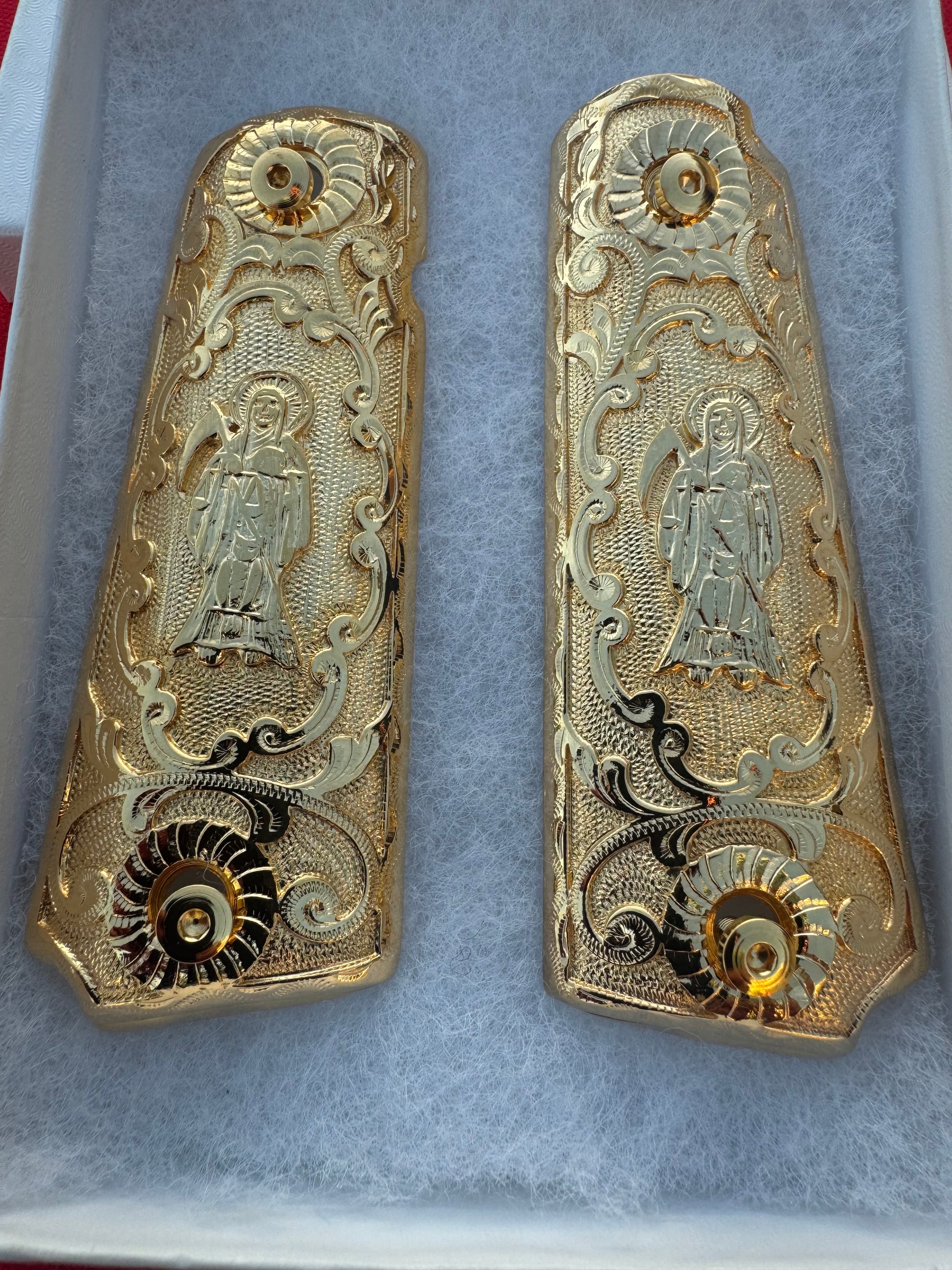 1911 Santa Muerte Grips 24k Gold Plated .45 38 Super caliber