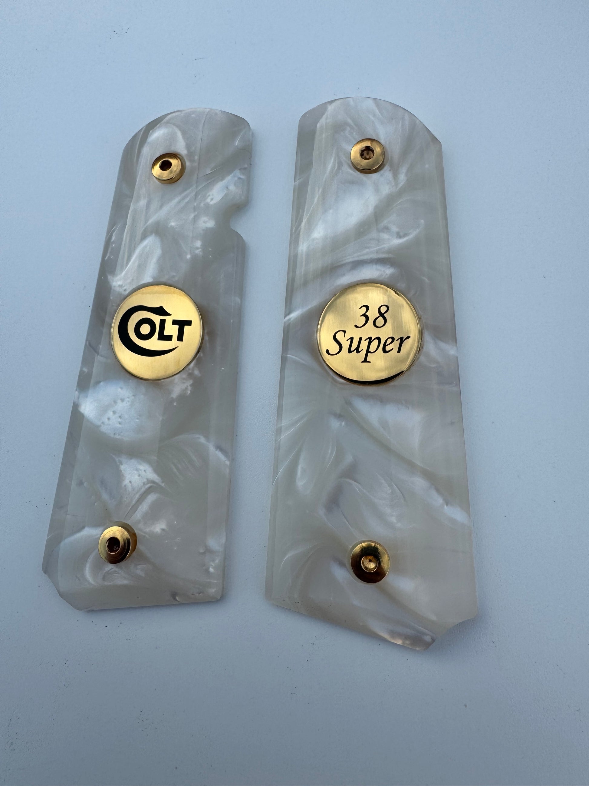 1911 Pearl Colt 38 Super Medallion 24k Gold Plated Inlayed Grips White Grips
