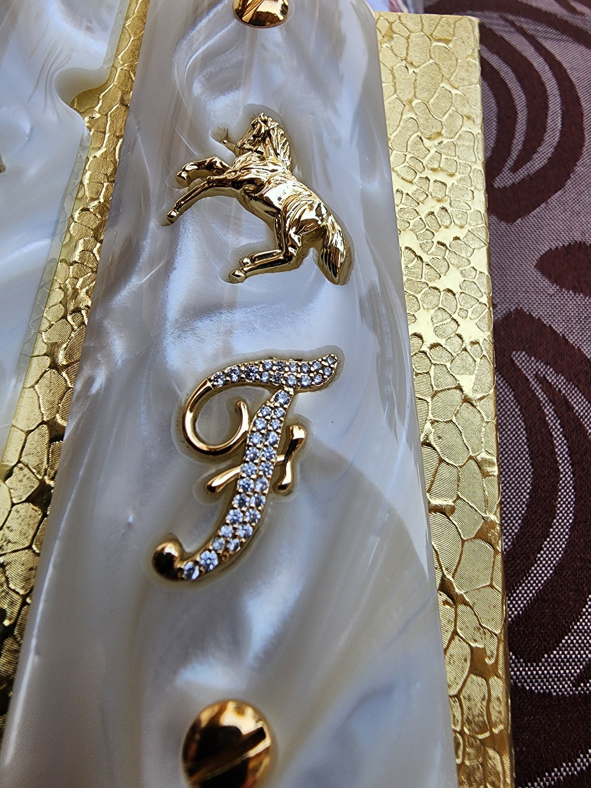 Gold-Plated “F” Letter Inlays with CZ Accents